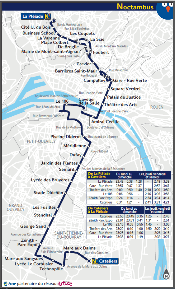 reliant la Pléïade aux Cateliers, en desservant au passage le centre de Rouen et le 106.